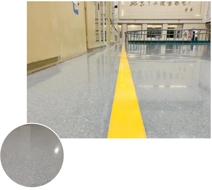 环氧磨石出色的平整度让空间显得更加开阔明亮,更确保了人员行走的舒适与安全,减少了因地面不平造成的安全隐患。
